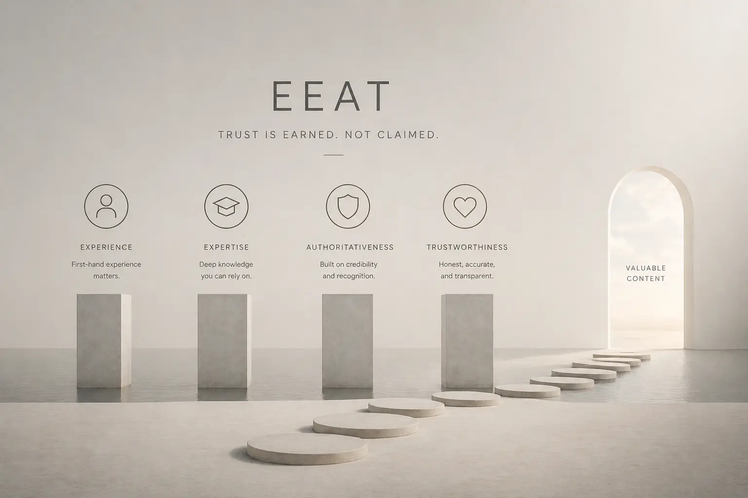 EEAT (Experience, Expertise, Authoritativeness, Trustworthiness) is Google’s framework for verifying content quality. It rewards content backed by real-world experience, expert authors, and credible data citations.